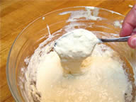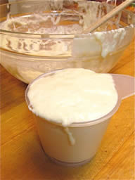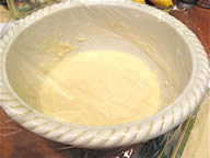 CROISSANTS —> for 12 morning buns / ——> only do half this recipe yield: 8 croissants prep time: 1 hour 30 minutes (active) 17 hours (inactive) cook time: 20 minutes total time: 2 to 3 days INGREDIENTS: Preferment: ¾ cup non-fat milk (6 oz/150 ml) 1 tablespoon active dry yeast (15ml) 1 1/3 cup all-purpose flour (6 ¼ oz/175g) Dough: 1 tablespoon + 1 teaspoon active dry yeast (20ml) 1¾ cup whole milk (14 oz/425 ml) 6 cups all purpose flour (28 oz/800g) 1/3 cup sugar (2½ oz/70g) **** ——> omit sugar for use in savory morning buns. 1 tablespoon + 1 teaspoon salt (20 ml) 1 tablespoon unsalted butter, melted (15ml) Roll-in butter: 2¾ cup unsalted butter (22 oz/625g) Egg wash: 4 large egg yolks (2 oz/60 ml) ¼ cup heavy cream pinch salt DIRECTIONS: 1. To Make the Preferment: In a small saucepan, warm the milk to take the chill off (between 80° to 90 °F). Pour the milk into a mixing bowl, sprinkle the yeast over the milk, stir to dissolve the yeast with a wooden spoon, and then add the flour, mixing with a wooden spoon until a smooth batter forms. Cover the bowl with cheesecloth and let the mixture rise until almost double in volume, 2 to 3 hours at moderate temperature or overnight in the refrigerator. 2. To Make the Dough: First measure out all your ingredients and keep them near at hand. Transfer the preferment and then the yeast to the large bowl of a stand mixer fitted with the dough hook. Mix on low speed until the yeast is incorporated into the preferment batter, which will take a minute or two. Stop the mixer as needed and use a spatula to clean the bottom and sides of the bowl, folding the loosened portion into the mixture to incorporate all the elements fully. When the mixture has come together into an even, well-mixed mass, increase the speed to medium, and mix for a couple of minutes. Slowly add half of the milk and continue to mix until the milk is fully incorporated. 3. Reduce the speed to low, add the flour, sugar, salt, melted butter, and the rest of the milk, and mix until the mass comes together in a loose dough, about 3 minutes. Turn off the mixer and let the dough rest for 15 to 20 minutes. This resting period helps to shorten the final mixing phase, which comes next. 4. Engage the mixer again on low speed and mix until the dough is smooth and elastic, a maximum of 4 minutes. If the dough is very firm, add a little milk, 1 tablespoon at a time. Take care not to overmix the dough, which will result in a tough croissant that also turns stale more quickly. Remember, too, you will be rolling out the dough several times, which will further develop the gluten structure, so though you want a smooth dough, the less mixing you do to achieve that goal, the better. Cover the bowl with cheesecloth and let the dough rise in a cool place until the volume increases by half, about 1-½ hours. 5. Lightly flour a work surface. Transfer the dough to the floured surface and press into a rectangle 2 inches thick. Wrap the rectangle in plastic wrap, or slip it into a plastic bag and seal closed. Place the dough in the refrigerator to chill for 4 to 6 hours. 6. To Make the Roll-in butter: About 1 hour before you are ready to start laminating the dough, put the butter that you will be rolling into the dough in the bowl of the mixer fitted with the paddle attachment. Mix on medium speed until malleable but not warm or soft, about 3 minutes. Remove the butter from the bowl, wrap in plastic wrap, and place in the refrigerator to chill but not resolidify. 7. Laminating the dough: Lightly dust a cool work surface, and then remove the chilled dough and the butter from the refrigerator. Unwrap the dough and place it on the floured surface. Roll out the dough into a rectangle 28 by 12 inches. With the long side of the rectangle facing you, and starting from the left side, spread and spot the butter over two-thirds of the length of the rectangle. Fold the uncovered third over the butter and then fold the left-hand third over the center, as if folding a business letter. The resulting rectangle is known as a plaque. With your fingers, push down along the seams on the top and the bottom to seal in the plaque. 8. Second turn: Give the plaque a quarter turn so the seams are to your right and left, rather than at the top and bottom. Again, roll out the dough into a rectangle 28 by 12 inches, and fold again in the same manner. Wrap in plastic wrap or slip into a plastic bag and place in the refrigerator for 1 ½ to 2 hours to relax the gluten in the dough before you make the third fold, or "turn". 9. Third turn: Clean the work surface, dust again with flour, and remove the dough from the refrigerator. Unwrap, place on the floured surface, and again roll out into a rectangle 28 by 12 inches. Fold into thirds in the same manner. You should have a plaque of dough measuring about 9 by 12 inches, about the size of a quarter sheet pan, and 1 ½ to 2 inches thick. Wrap in plastic wrap or slip into the plastic bag, place on a quarter sheet pan, and immediately place in the freezer to chill for at least 1 hour. If you intend to make the croissants the next morning, leave the dough in the freezer until the evening and then transfer it to the refrigerator before retiring. The next morning, the dough will be ready to roll out and form into croissants, proof, and bake. Or, you can leave the dough in the freezer for up to 1 week; just remember to transfer it to the refrigerator to thaw overnight before using. 10. Making the croissant: When you are ready to roll out the dough, dust the work surface again. Roll out the dough into a rectangle 32 by 12 inches and 3/8 inches thick. Using a pizza wheel or chef's knife, cut the dough into long triangles that measure 10 to 12 inches on each side and about 4 inches along the base. 11. Line a half sheet pan (about 13 by 18 inches) with parchment paper. To shape each croissant, position a triangle with the base facing you. Positioning your palms on the two outer points of th